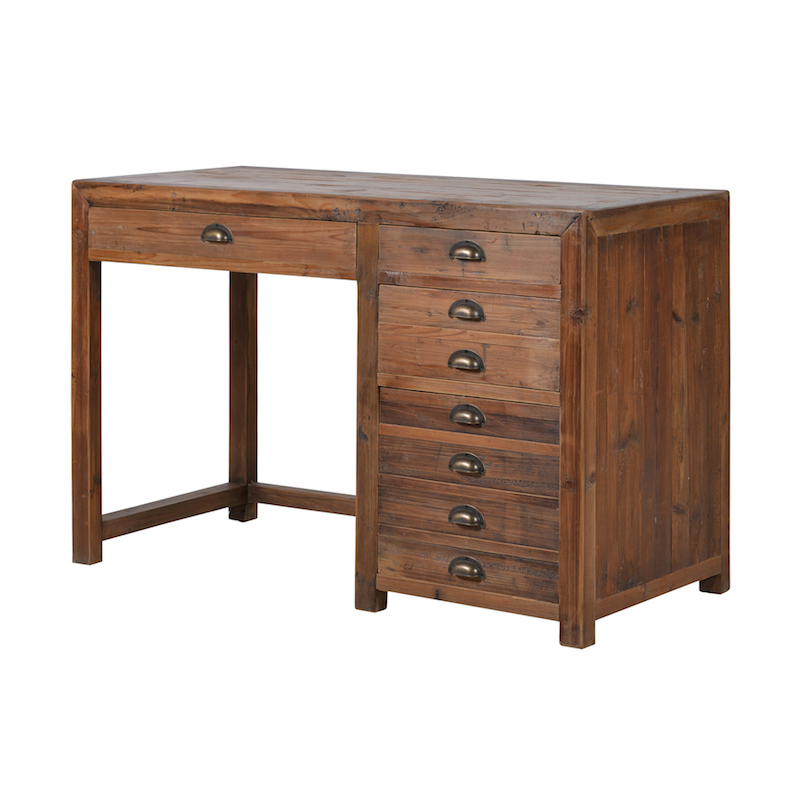 An industrial style rustic Pine wooden kneehole desk with an aged effect. An urban living collection that would suit loft style and warehouse conversions.