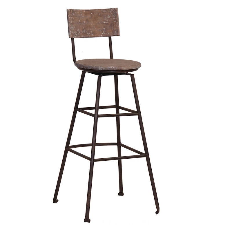 An old school Vintage industrial bar stool with an aged wooden swivel seat and iron frame. Our industrial chic Canteen bar stool would look great in a trendy urban style kitchen or bar.