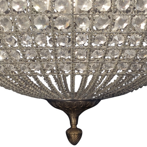Exceptional crystal ball chandelier pendant finished in antique brass. Decorated in beautiful crystals and leaf decor.