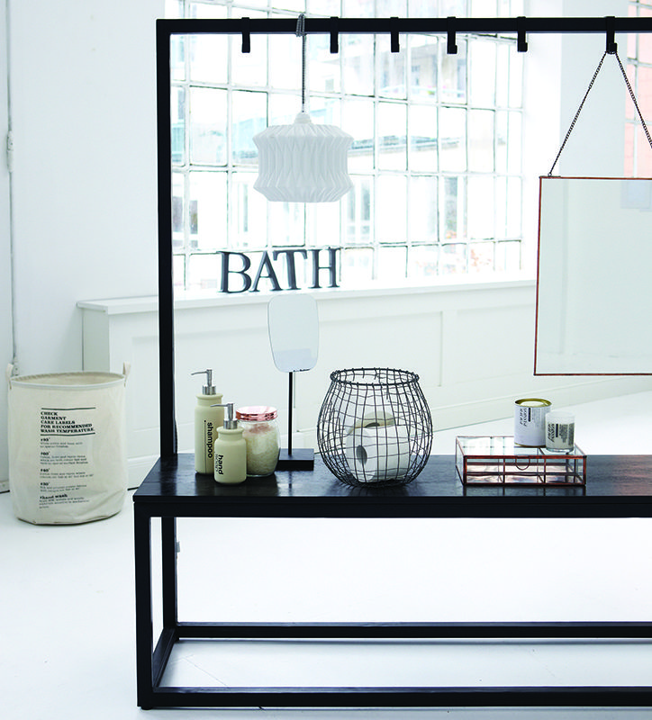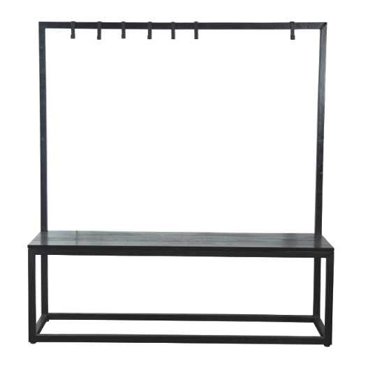 An industrial chic iron bench and hanging rack, handmade from iron and recycled mango wood. Perfect for a changing room or entrance.