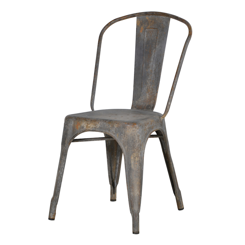 A highly distressed industrial chic dining chair that can also be used as an accent chair. Our warehouse style metal chair will look great in a loft or industrial styled interior.